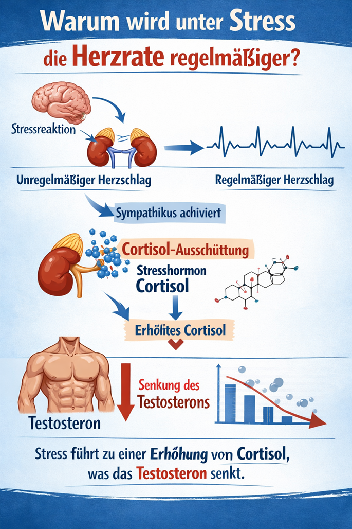 Herz schlägt gleichmäßiger weniger Variation HRV sinkt