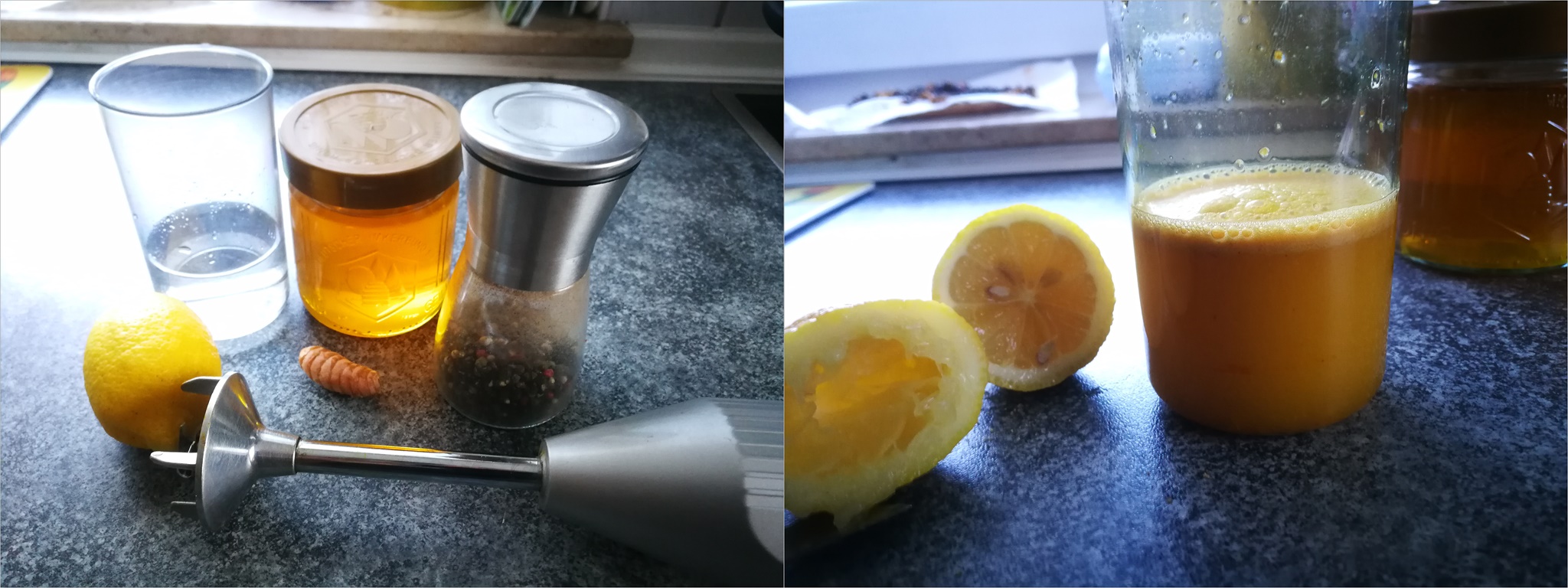 Ihr müsst jetzt den kalten Kaffee mit der Butter und dem Kokosöl in den Mixer geben. Butter und Kokosöl vorher kurz erwärmen, damit sie flüssig werden.
