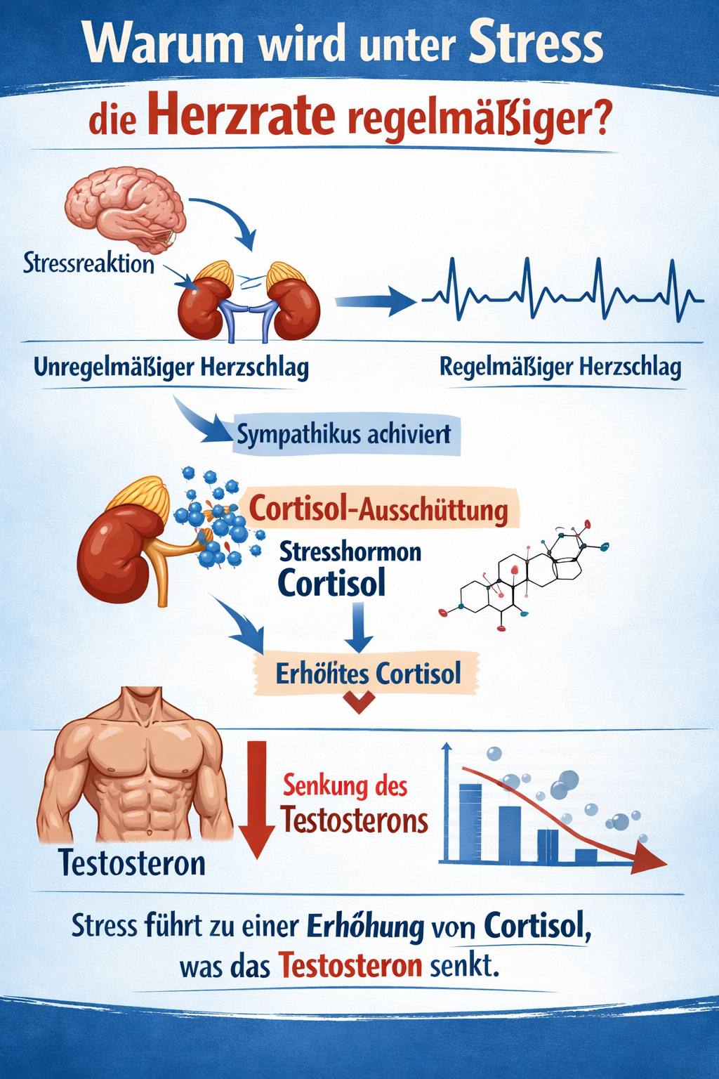 Herz schlägt gleichmäßiger weniger Variation HRV sinkt