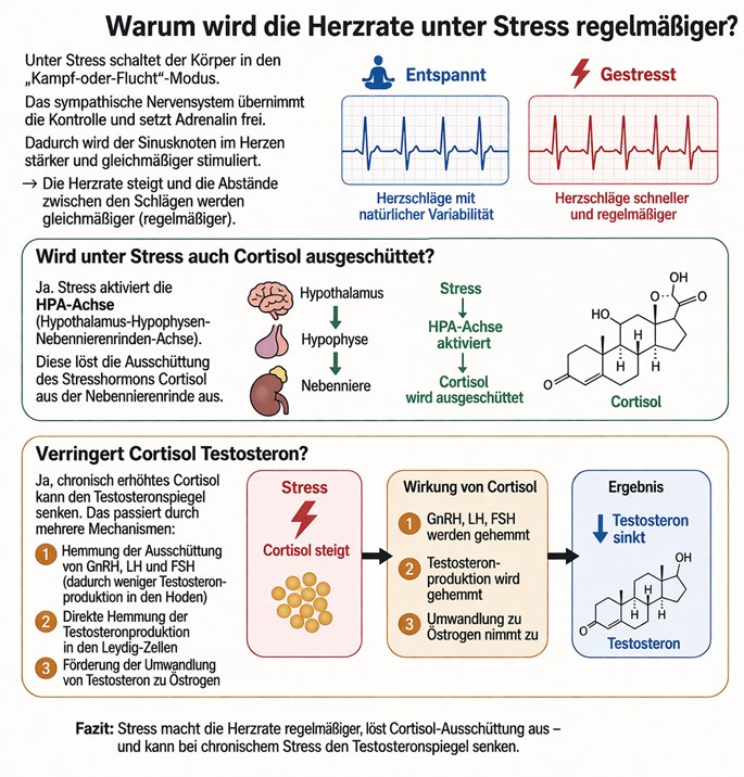 Niedrige HRV= dein Herz schlägt gleichmäßiger= dein Körper ist eher im „festen Modus“
