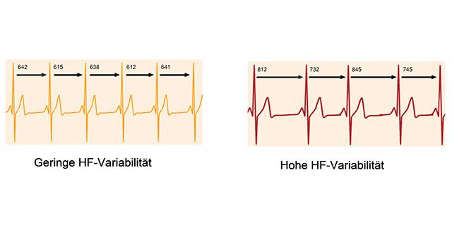 Hohe HRV = starker Parasympathikus-Einfluss Niedrige HRV = Sympathikus dominiert